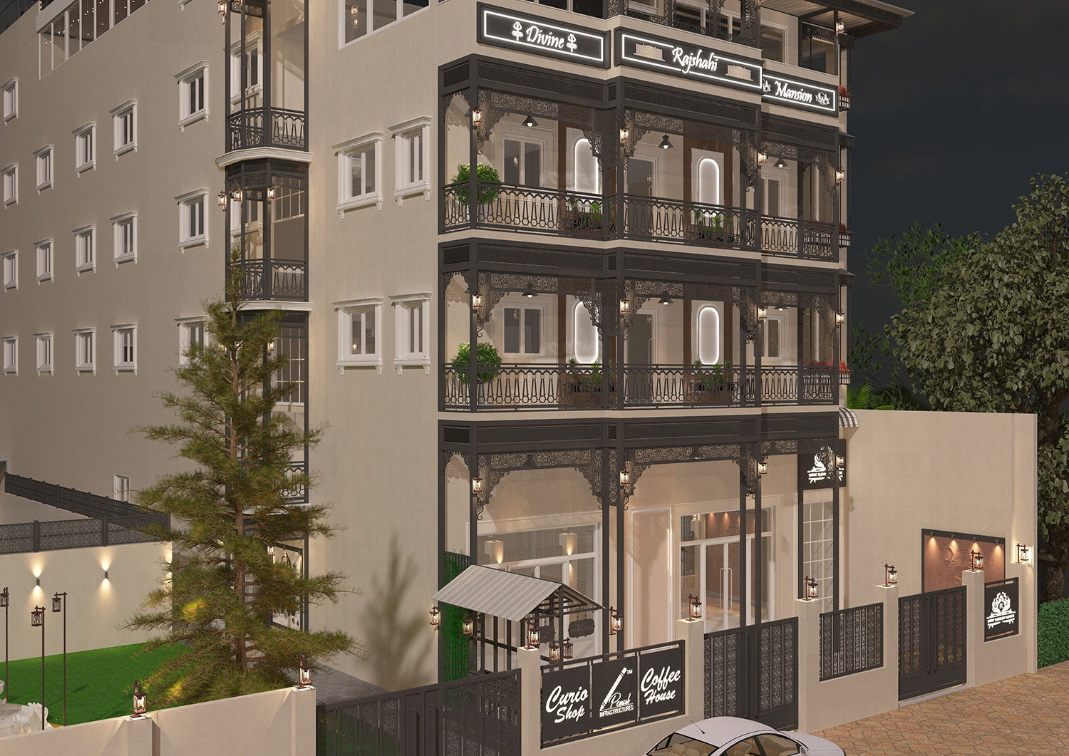Once echoing with tradition and craftsmanship, Divine Rajshahi Mansion now stands restored as a refined heritage retreat. The property features 32 elegantly appointed rooms that blend vintage character with contemporary luxury, along with three regal banquet spaces designed for weddings, celebrations, and distinguished gatherings.