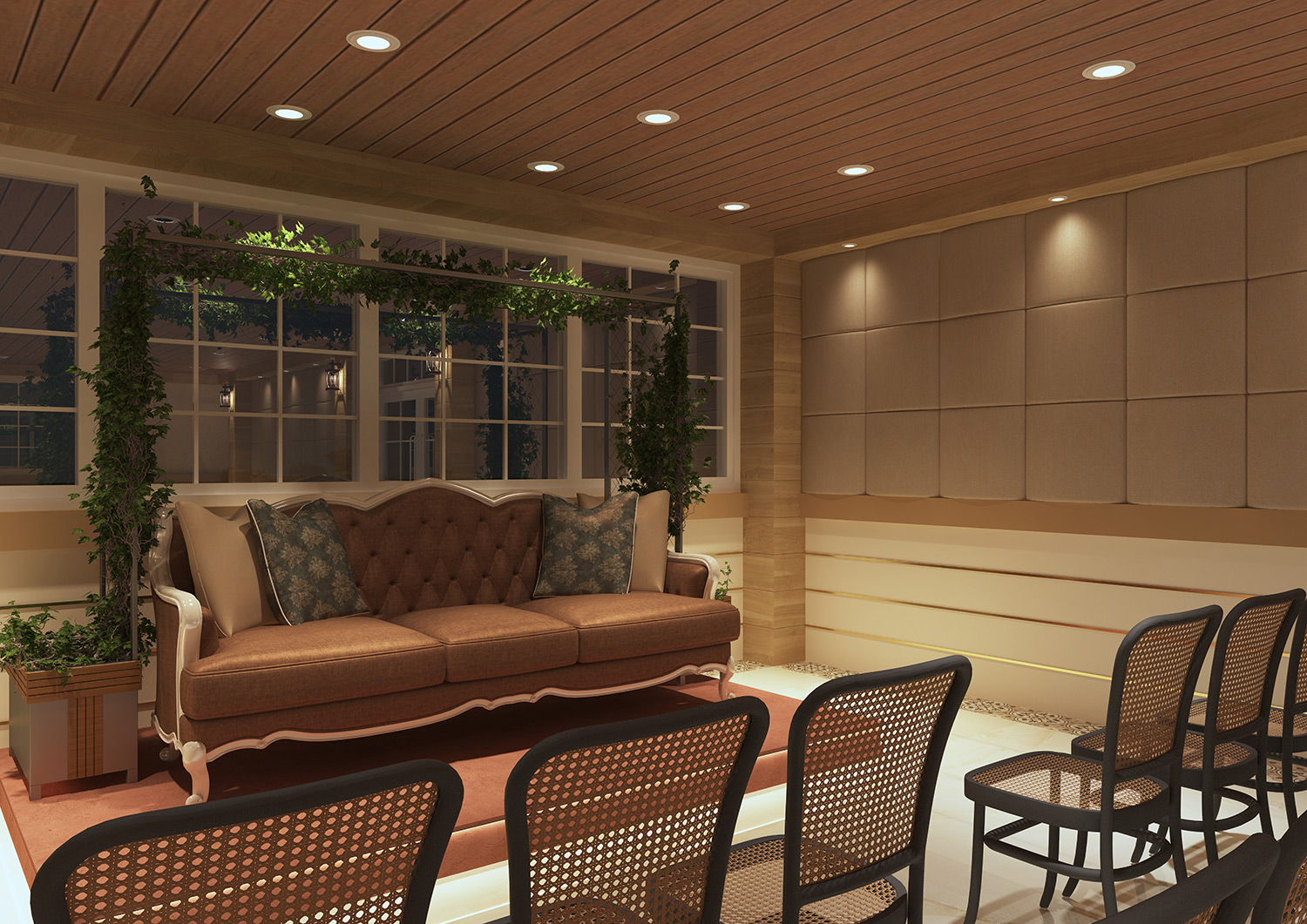— a timeless architectural centerpiece transformed into an intimate lounge setting. Framed by stone arches and ambient lighting, it offers a serene space for conversation, reflection, and quiet indulgence. Here, history is not observed — it is lived.